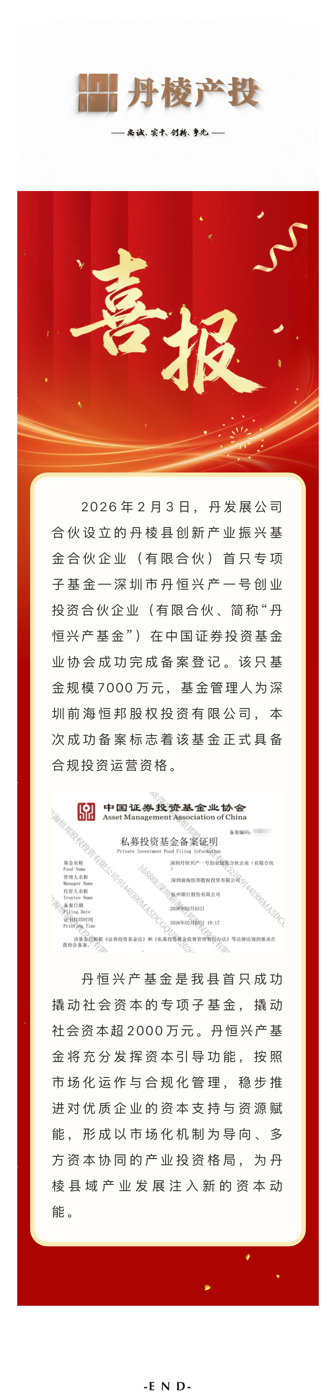 喜報!丹恒興產(chǎn)基金備案成功